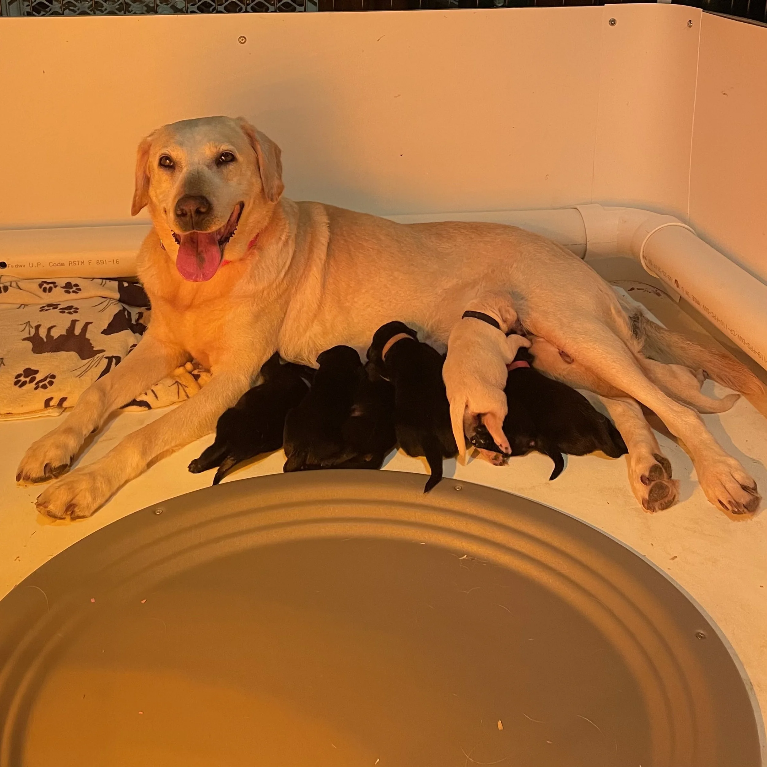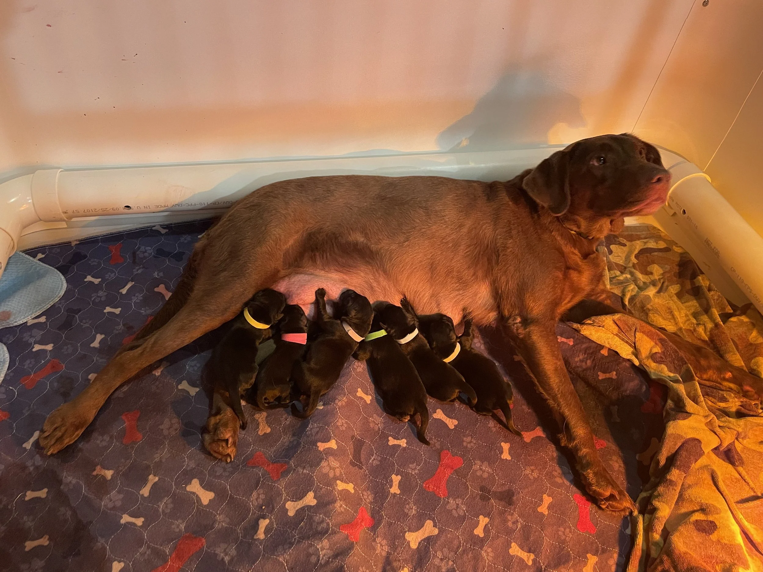 June 18th 2024 Stormy gave birth to 8 pups. This will be her only litter due to age and its a special one. Stormy worked as a (duck/Pheasant) guide dog for me before we moved to Indiana.Ruger is out of Mako who was my #1 guide dog for years. Ruger is a great dog who shows all the signs of being just like his sire. Pups are doing well and pics will come soon as their eyes are just opening. If interested in one of these pups call or text 516-652-1499 or email Pointtopointwest@gmail.com